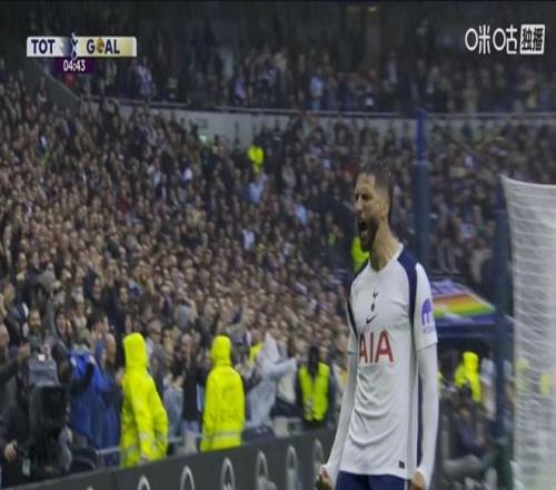 开场仅仅5分钟,热刺前场左侧开出角球,二次进攻机会,帕利尼亚接到传中头球摆到中路,门前本坦库尔凌空扫射破门,帮助热刺取得领先。