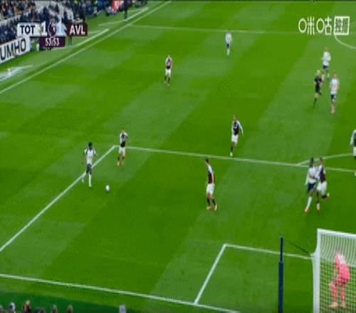 第77分钟,维拉前场围攻,热刺球员后场将球解围,卡什中圈附近直接一脚平抽将球打回前场右路,迪涅精巧的将球卸下后分出,布恩迪亚接球横向盘带直接兜出一脚贴地弧线球破门,维拉将比分反超。