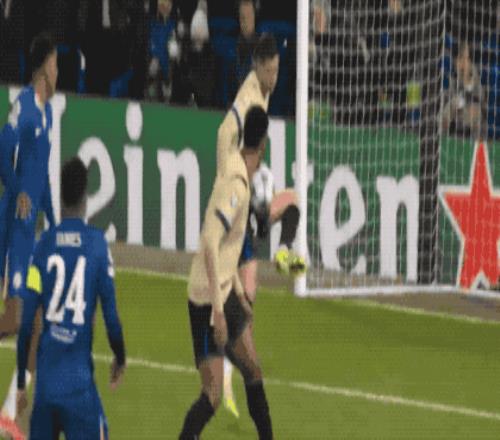 开场不到3分钟,恩佐就接到福法纳的传球,中路包抄,将球打进,但通过慢镜头可以看到,福法纳手球在先,进球被吹掉。
